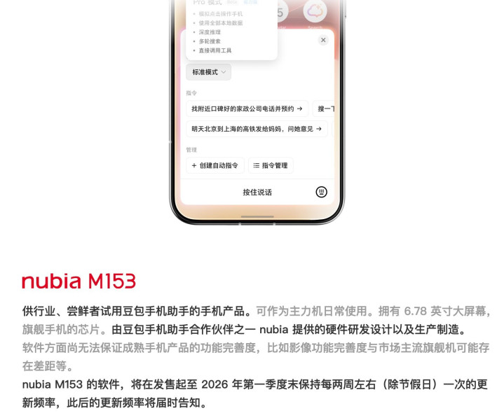 据悉,AG中国手机官方网页版字节杰出于 2025 年 12 月推出了豆包手机助手,hg真人游戏官方网站首发搭载于于中兴合营的努比亚 M153 机型上,这款手机被合计是初代豆包手机。该机搭载骁龙 8 至尊版芯片、6.78 英寸屏幕、6000mAh 电板以及 5000 万像素后置三摄,售价 3499 元。这款手机的十分之处在于软件层面深度交融了 AI 功能,能完满跨愚弄自动操作、屏幕实质及时相识与致密等等技艺。但由于其需要用户授予更高等别的权限,在隐痛方面激励公众担忧。随后有不少 App 出现无法反应豆包助手操作的情况。尽管如斯,豆包手机仍被合计是 AI 硬件的一次进攻尝试。